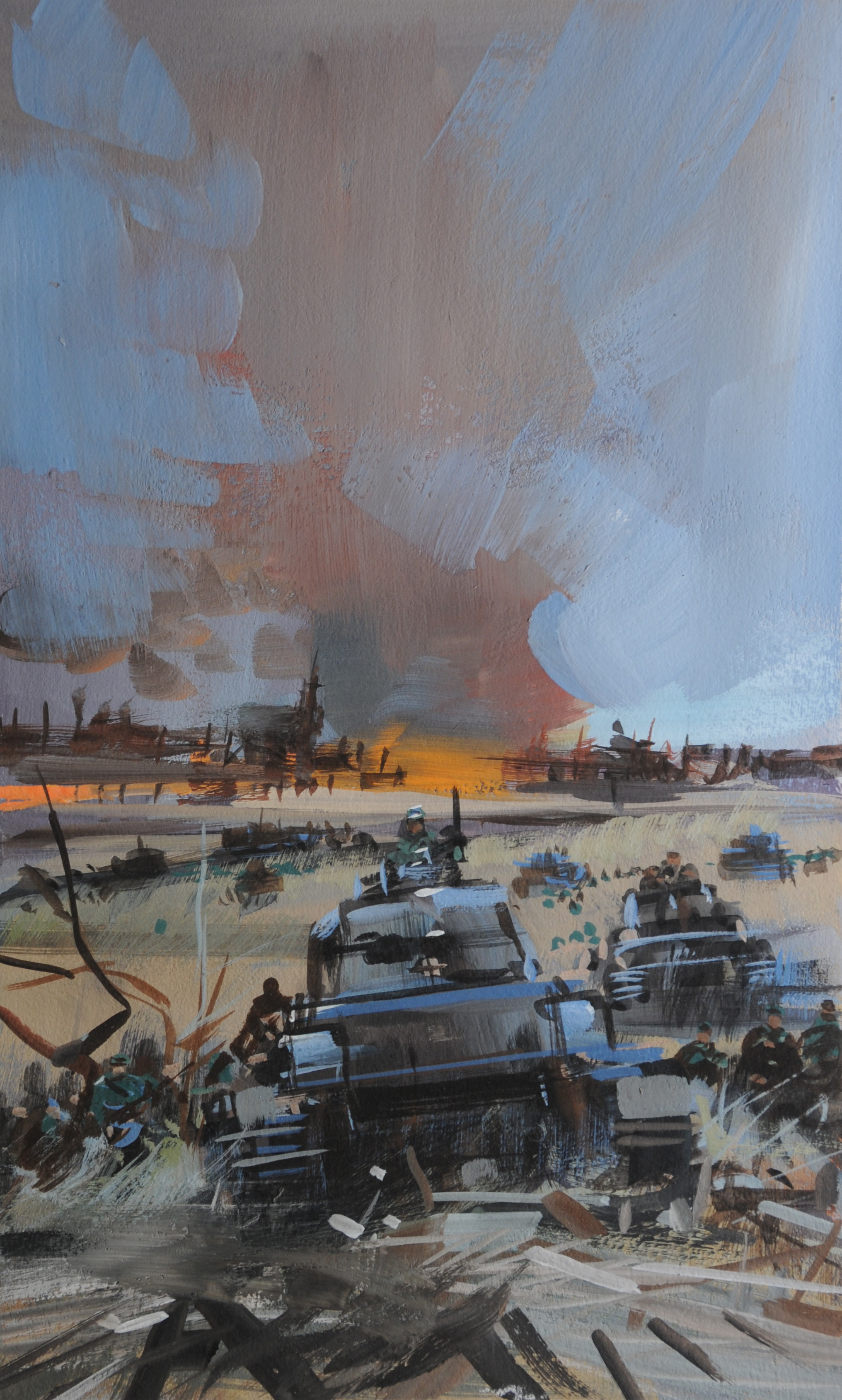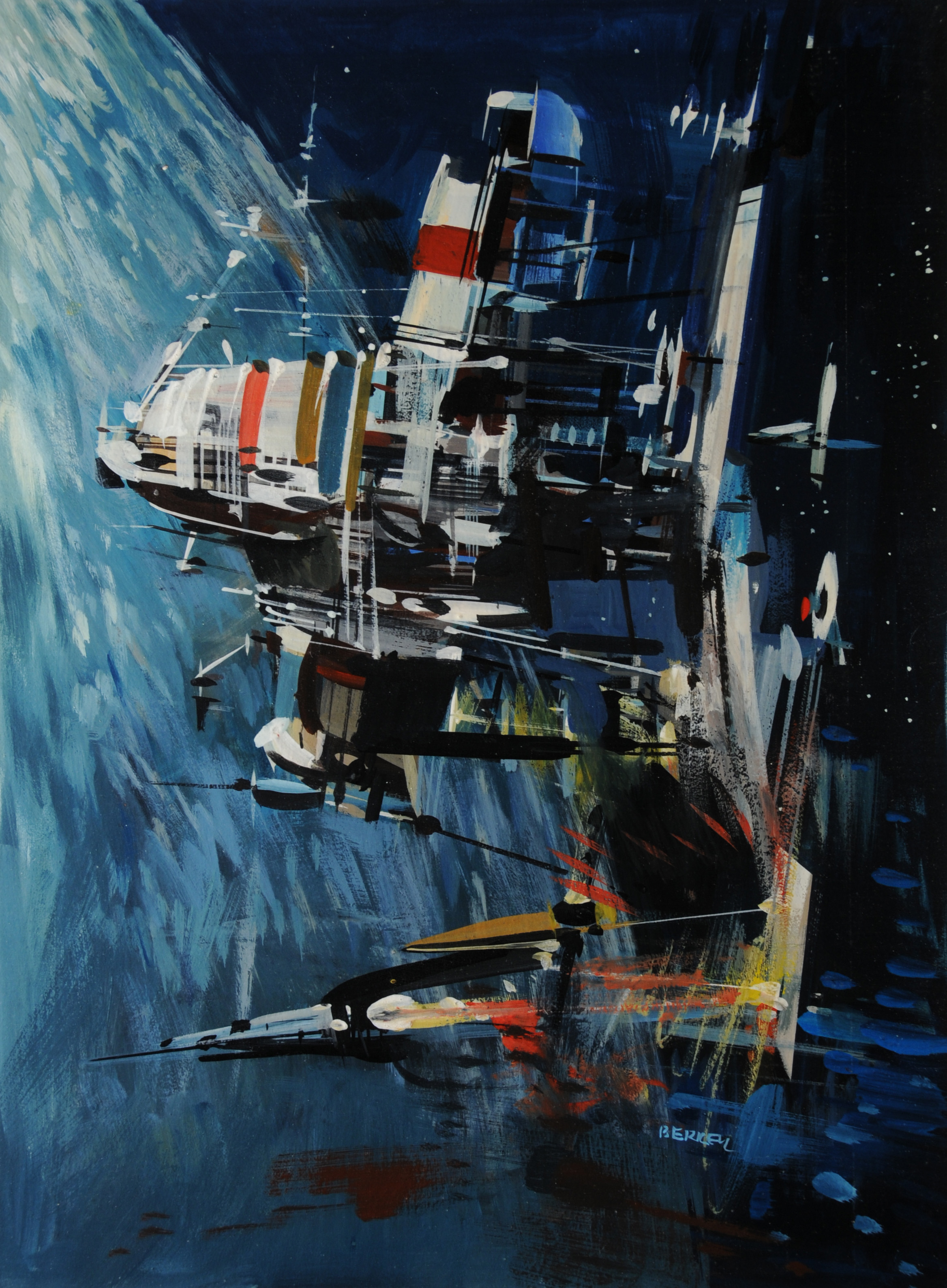 Copyright and licensing is retained by John Berkey Art Ltd of all original art. The purchase of an original work of art does not include copyright or licensing privileges. This means your purchased painting(s) may not be licened, copied, duplicated or published or used anywhere on the Internet without written permission of John Berkey Art Ltd.