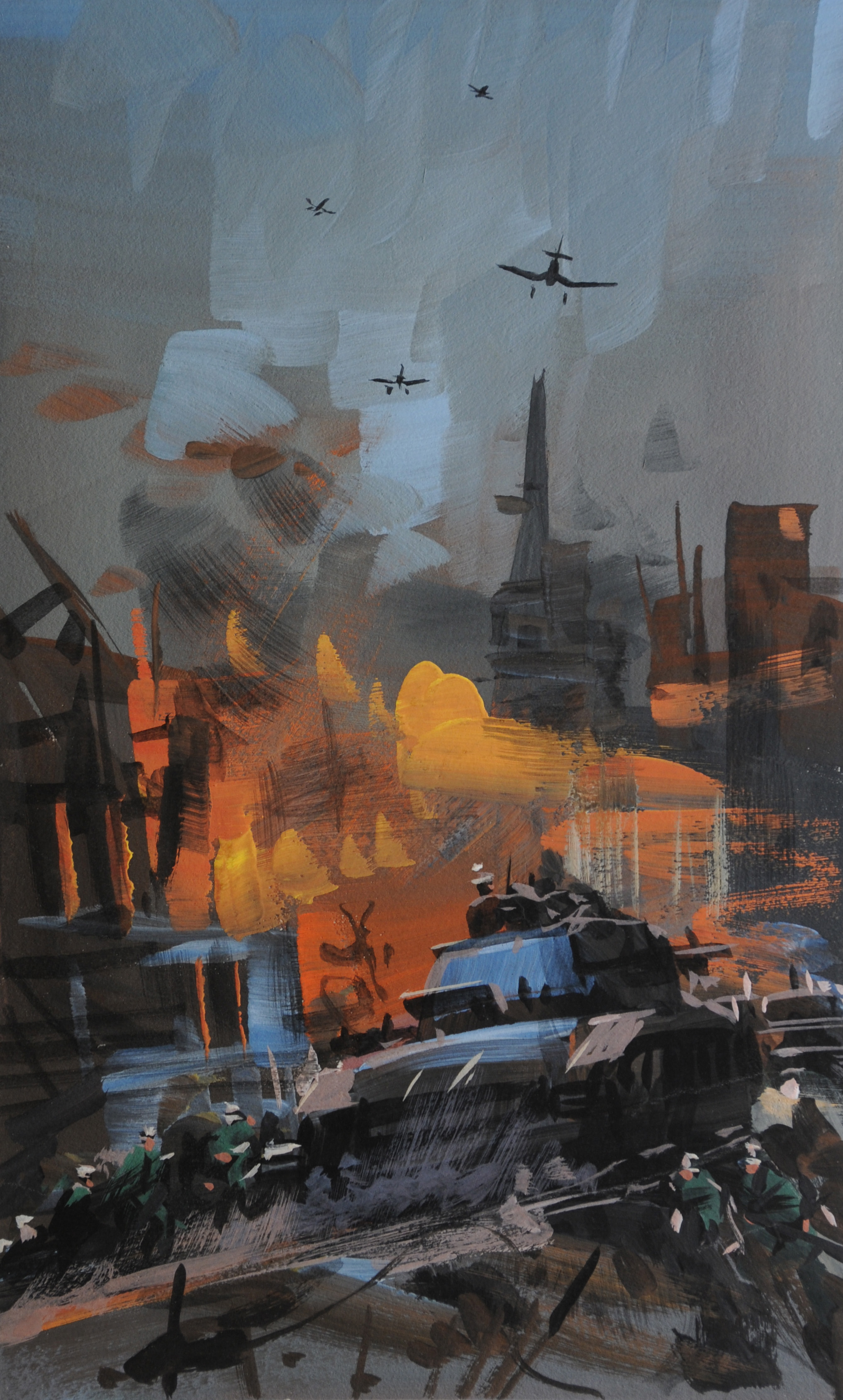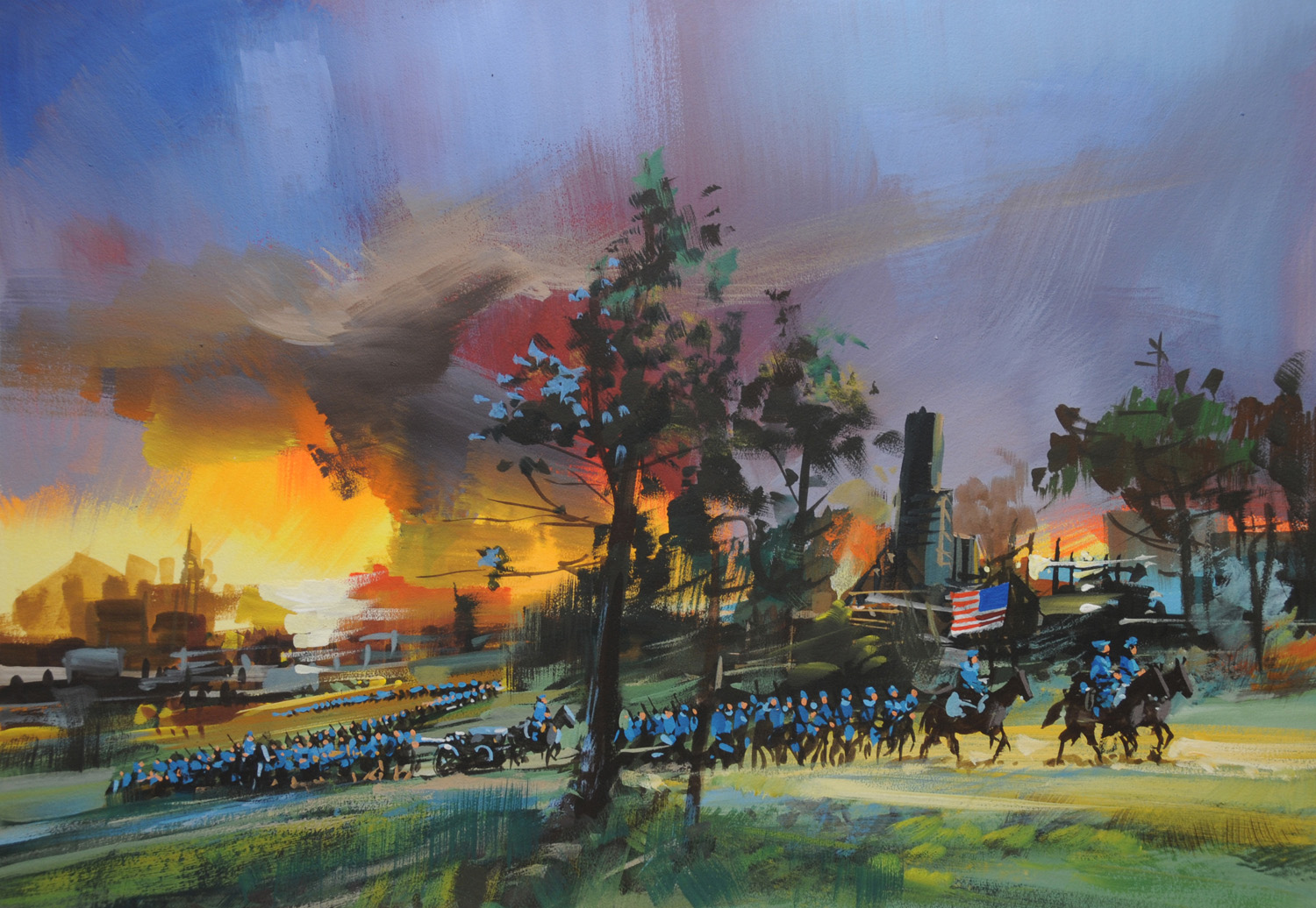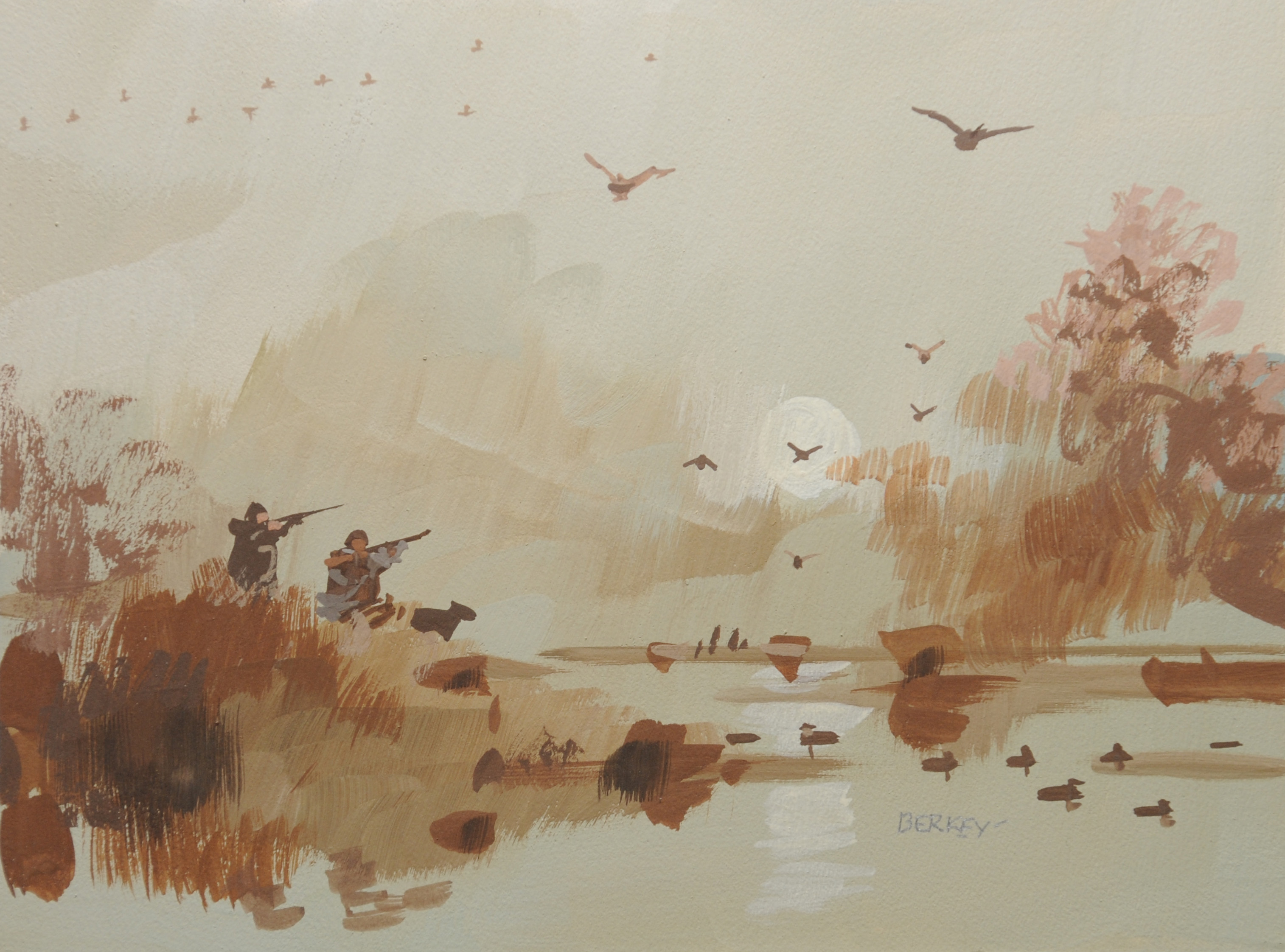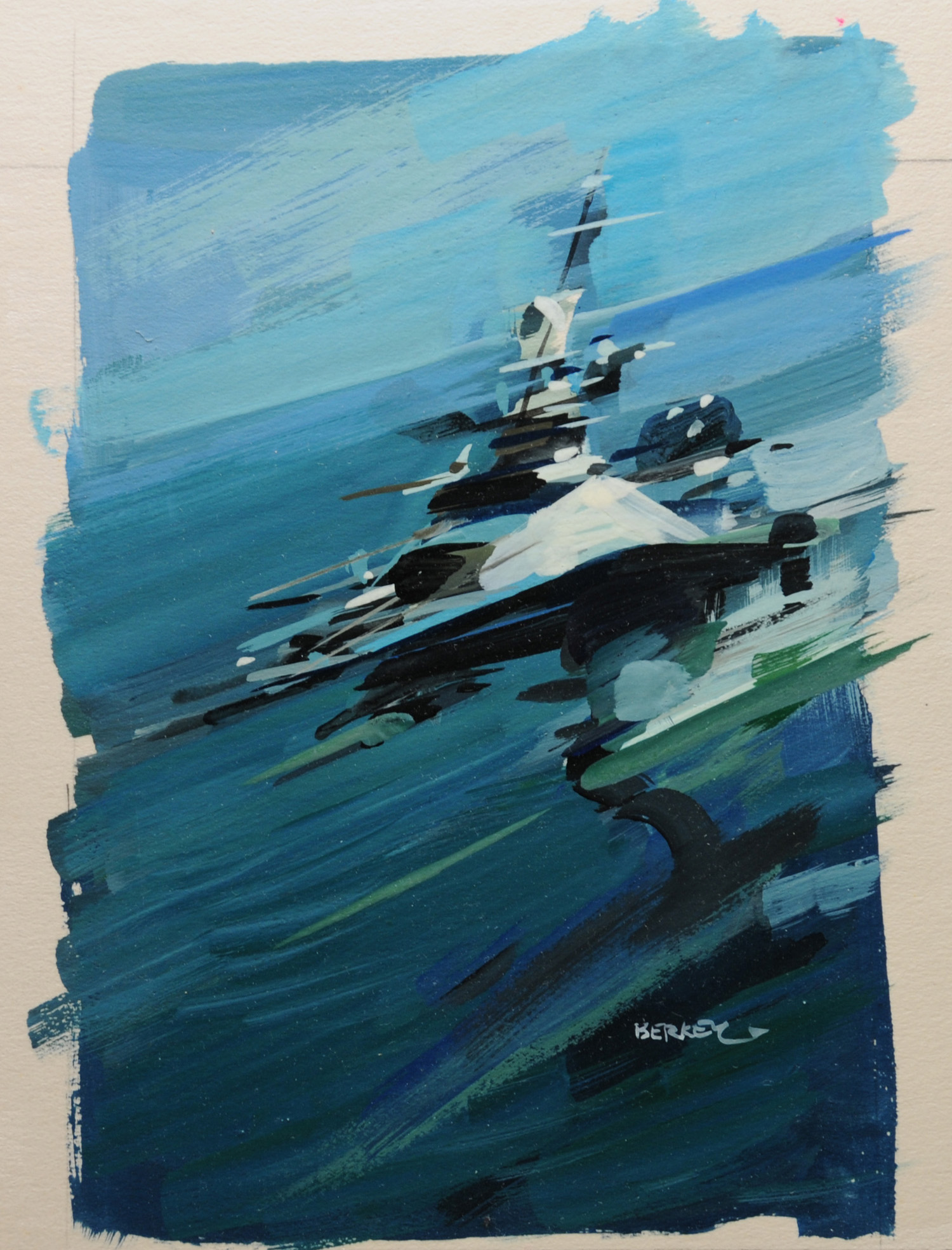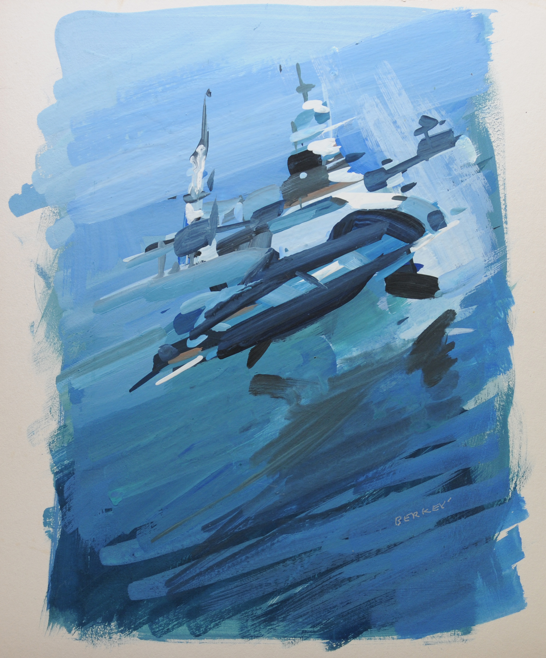 Copyright and licensing is retained by John Berkey Art Ltd of all original art. The purchase of an original work of art does not include copyright or licensing privileges. This means your purchased painting(s) may not be licened, copied, duplicated or published or used anywhere on the Internet without written permission of John Berkey Art Ltd.